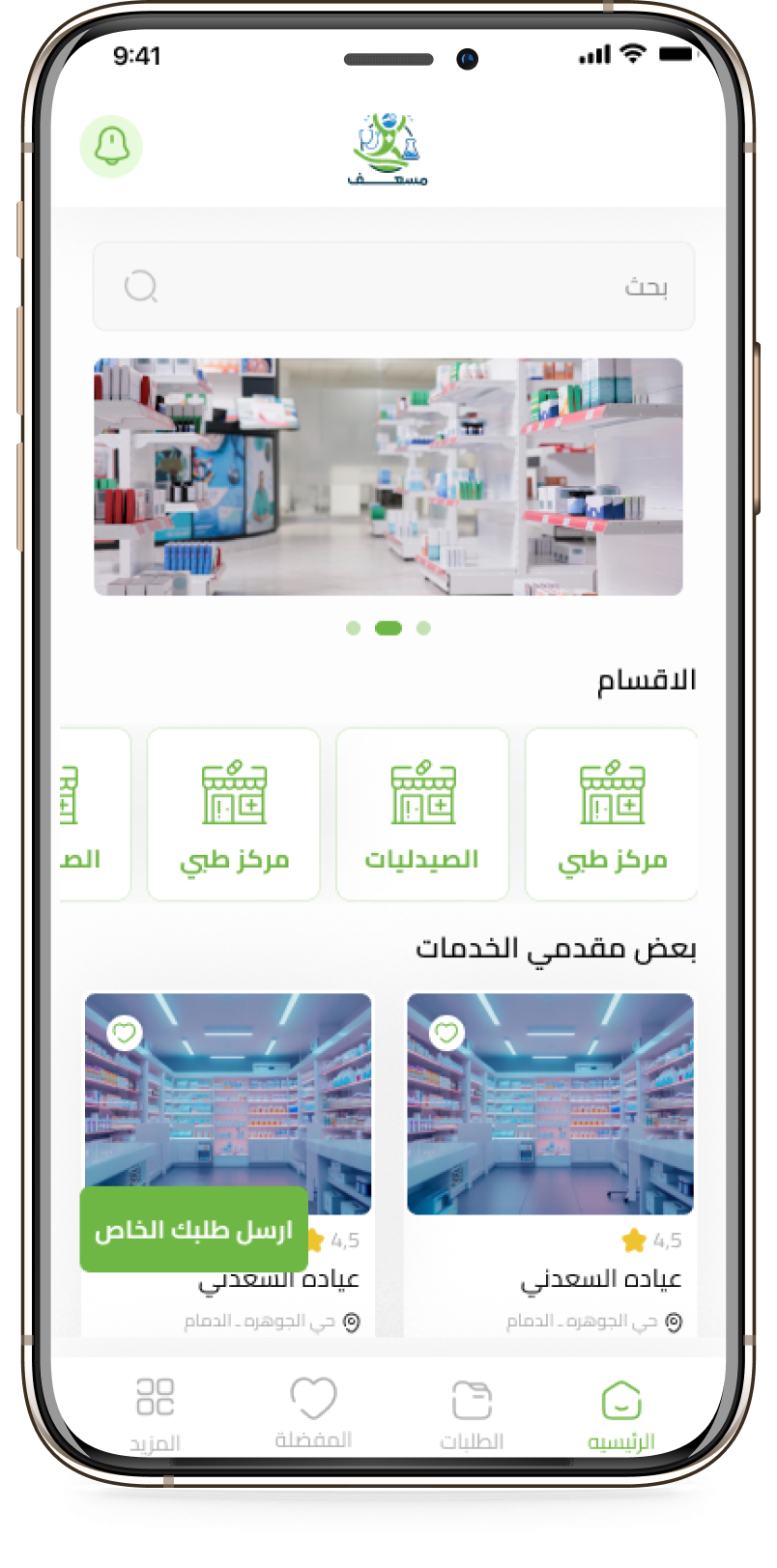 مسعف هو تطبيق مبتكر يعمل كوسيط رقمي يربط العملاء بمقدمي الخدمات الطبية، بما في ذلك الأطباء، المستوصفات، المراكز الطبية، المختبرات، والصيدليات. يتيح التطبيق للمستخدمين استعراض مقدمي الخدمات حسب التخصص، الموقع، والعروض المتاحة، مع إمكانية التواصل المباشر وطلب الخدمات بسهولة. سواء كنت تبحث عن استشارة طبية، فحص مختبري، أو خصومات على الأدوية، مسعف يوفر لك تجربة سهلة وآمنة للحصول على أفضل الخدمات الطبية في متناول يدك.